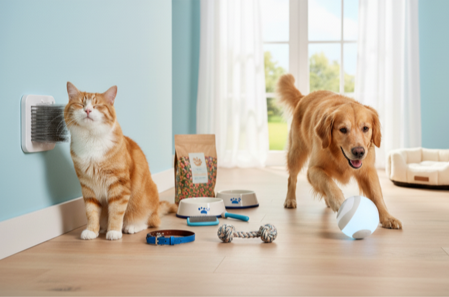 Cat Self Groomer with Massage Comb Brush - Perfect for Kitten and Puppy Grooming and Relaxation Wall-Mounted