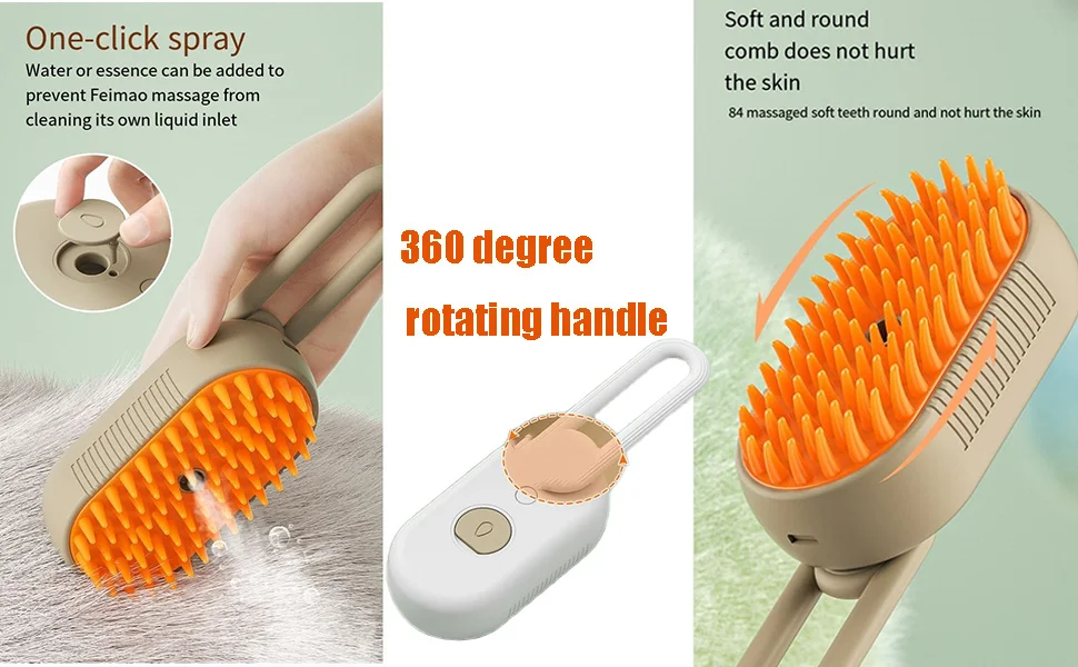 Cat steam brush - This 4 In1 steamy cat brush is the best cat brush ever, it can solve your cat/dog's hair tangling or hair flies everywhere, while can massage and clean to keep your pet neat and healthy, It an essential pet hair removal tool for your cat or dog, make your pet look more clean and beautiful